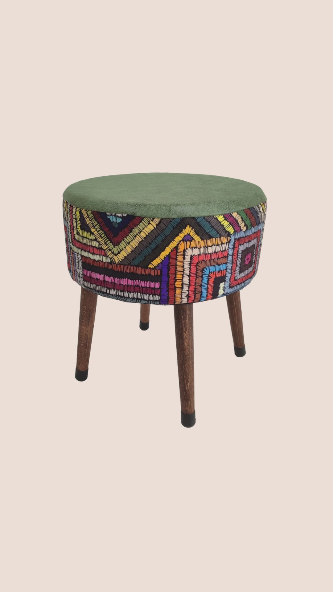 - Ev dekorasyonuna modern bir hava katan bu etnik desenli, üstü yeşil puf bench tabure, hem estetik hem fonksiyonel özellikleriyle öne çıkıyor.